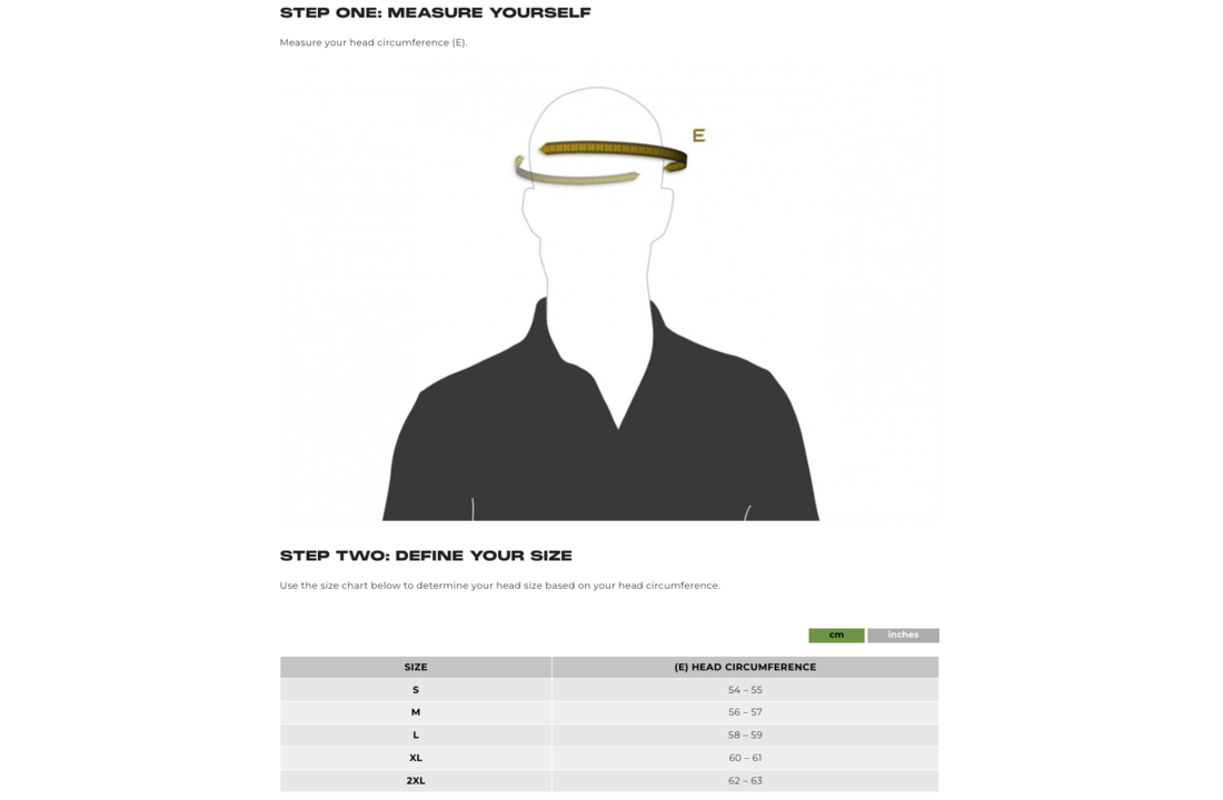 • Size 2XL = 62-63cm head circumference