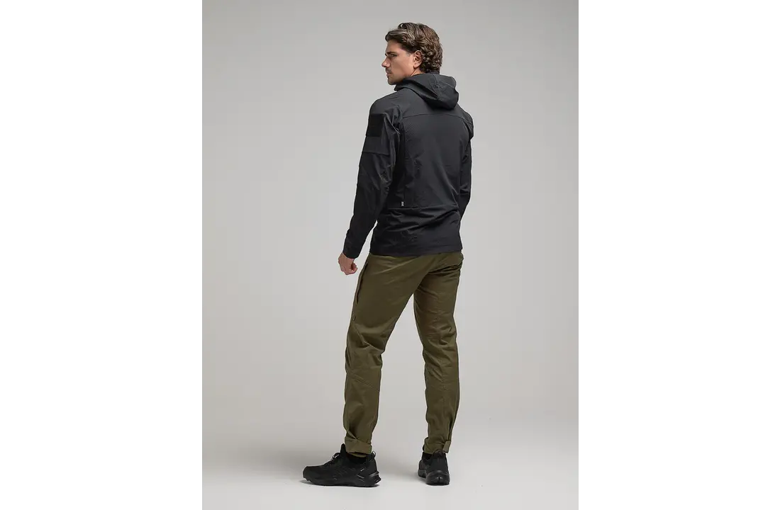 Voor het overige is het ontwerp van de Veles Soft Shell Jacket zorgvuldig overwogen voor gebruik met een klimgordel. De ergonomische snit is voorzien van zakken voor toegankelijkheid wanneer deze is vastgemaakt en/of om obstructie te voorkomen bij gebruik van een rugzak met heupgordel. Met slechts 410 gram is de jas licht genoeg om in een dagzak te worden verpakt, waardoor het een veelzijdige optie is voor dagtochten en meerdaagse expedities waarbij gewicht een belangrijk aandachtspunt is. YKK Vislon-ritsen, geborduurde insignes en klittenbandpatchsysteem op de mouw geven het Veles Soft Shell-jack alle bekende kenmerken van een iconisch ThruDark-kledingstuk - bedoeld als een lichtere afstammeling van het bekroonde Centurion Alpine Jacket.